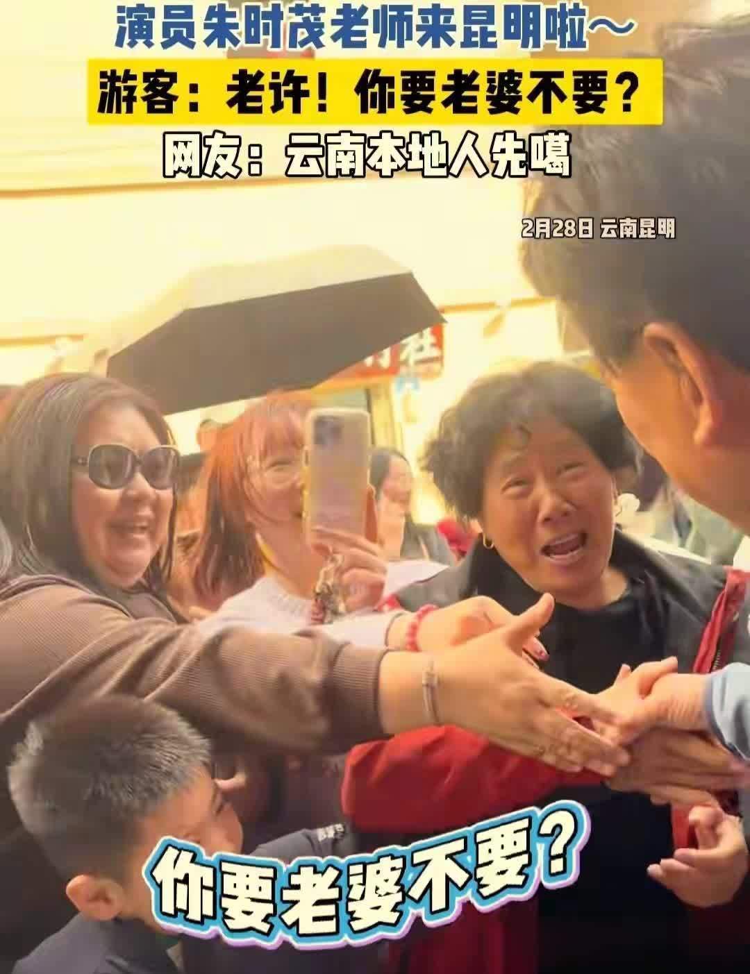 大家见到他一点不陌生,直接喊起经典台词:“老许,你要老婆不要?”还有人喊“队长,别开枪!”朱时茂全程笑着回应,特别随和,完全没有明星架子,和市民亲密互动,路人缘直接拉满。